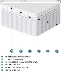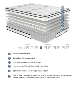 Edge to Edge Individually Pocketed Coil System, Virtually Eliminates Motion Transfer Between Sleeper’s, Personalized Contouring to Fit Each Sleeper’s Body