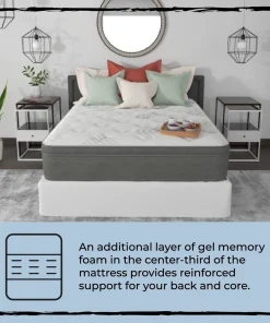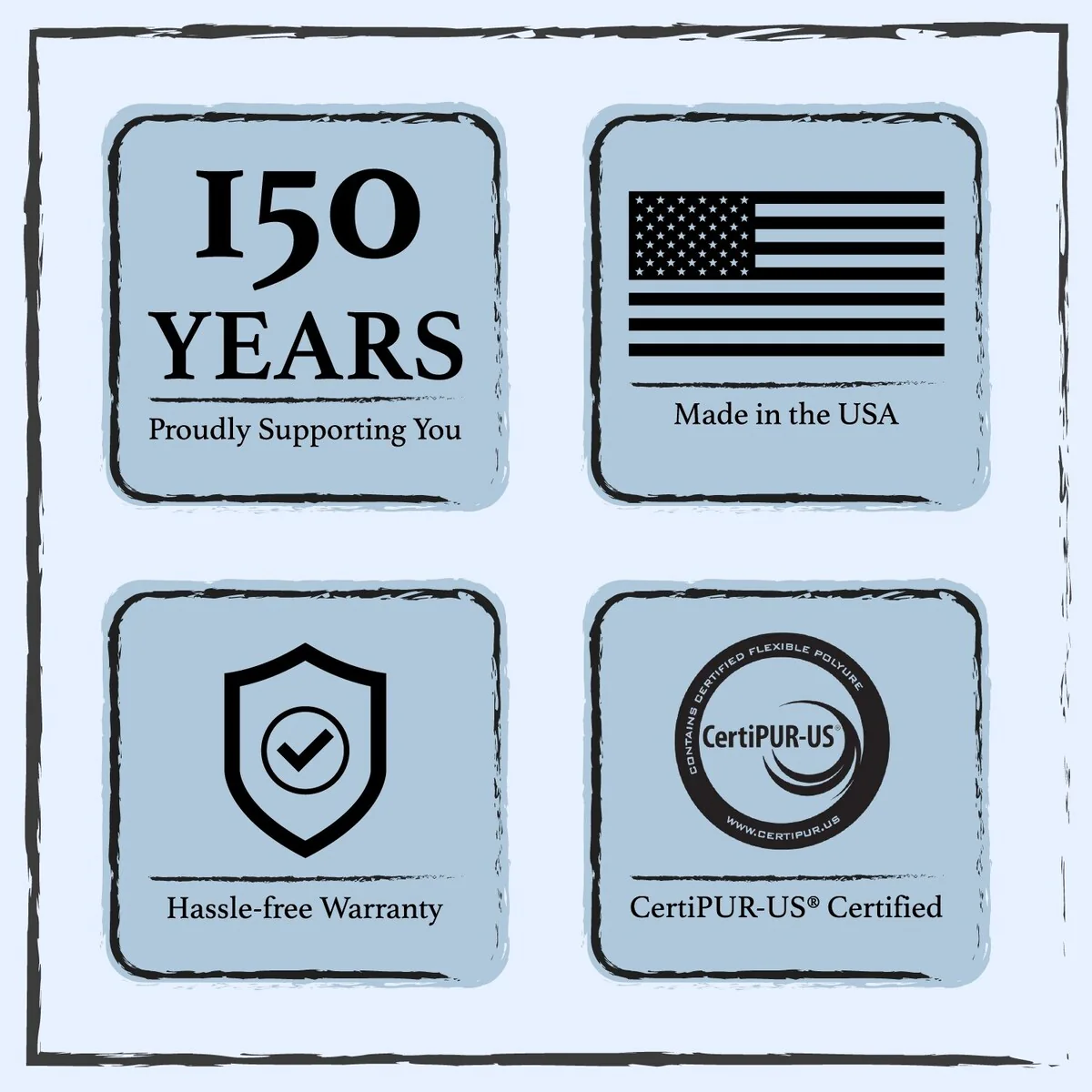 Wolf Bedding has been making quality mattresses in the USA since 1873. This mattress is designed to provide just the right amount of support and comfort. A indivually wrapped coil unit provides you with support while minimizing partner motion disturbance, allowing you to sleep sounder for longer. The stretch knit, breathable cover and Ultra Fresh FR fiber creates a comfortable sleep surface. Head to toe Gel infused Memory foam provides pressure relief and helps to regulate temperature for a better nights sleep.