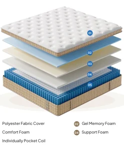 Motion Isolation Hybrid Mattress:our hybrid mattress featuring individually wrapped pocket springs, offering personalized support. This means minimal motion transfer, ensuring your partner’s sleep remains undisturbed. Sleep peacefully through the night.