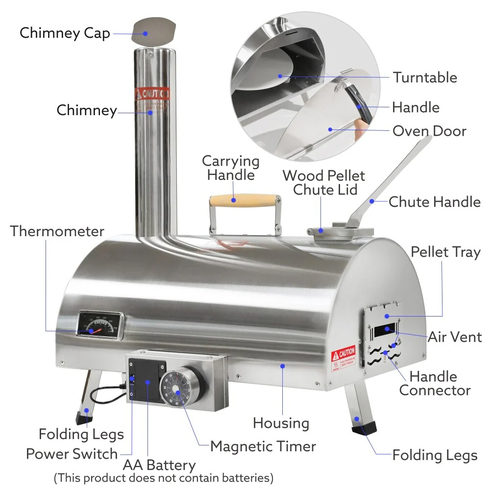 12 in. Automatic Wood Fired Outdoor Pizza Oven with Timer