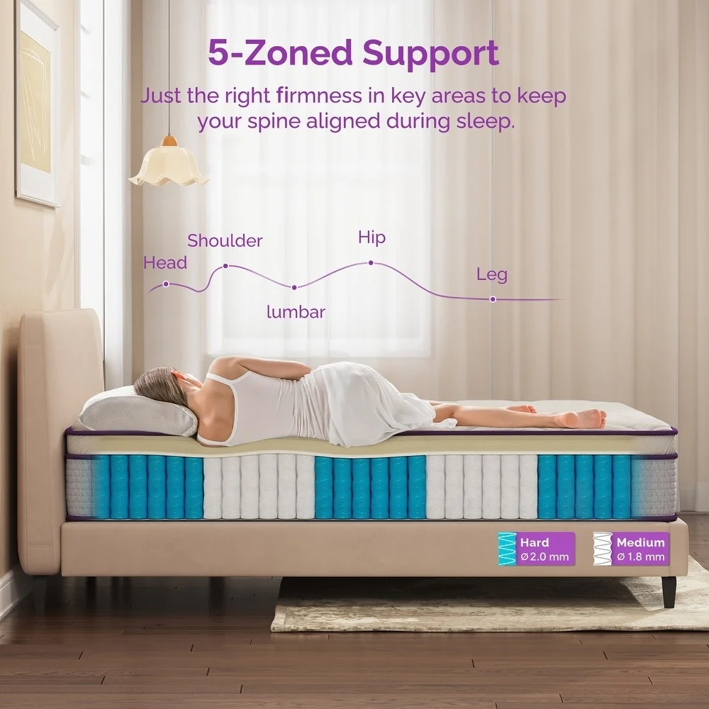 12 Inch Eruo Top Hybrid Mattress with Memory Foam and Spring Coils , Mattress in a Box