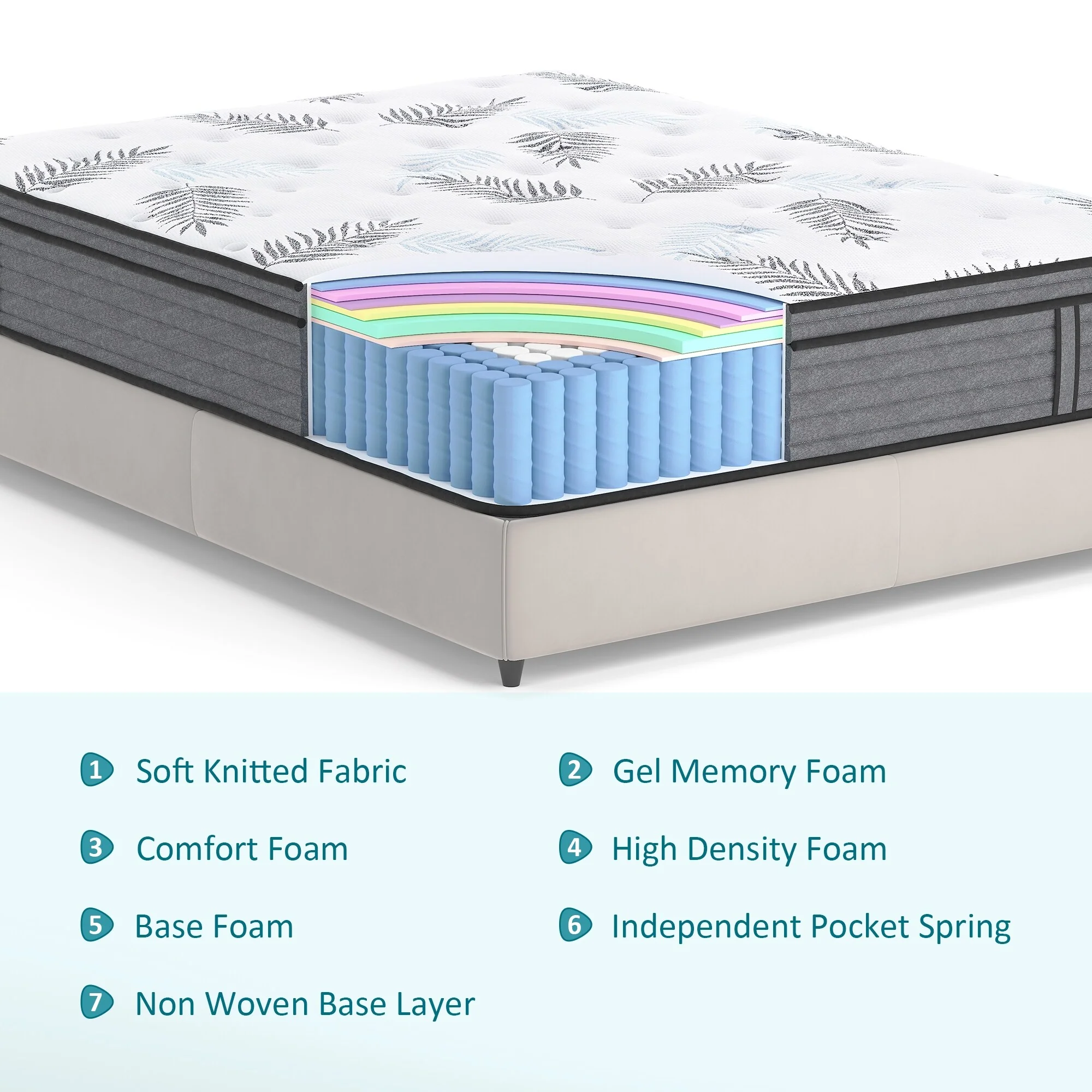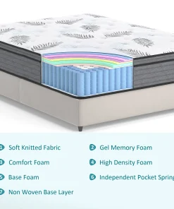 We believe that better quality memory foam mattresses can provide better sleep quality and bring a better quality of life. This hybrid mattress in a box adopts a better supporting and comfortable structure, which not only has a strong and durable supporting force but also brings more comfort under the effect of gel memory foam so that the body and the memory foam mattress have a closer fit, and are comfortable while taking away excess heat, enjoy the whole night’s cooling sleep.Â