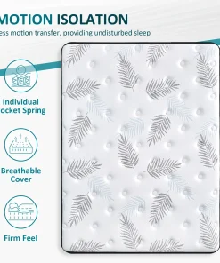 - Independent pocket springs reduce the vibration and sound of the hybrid mattress when sleeping partners turn around.