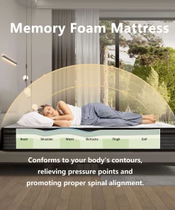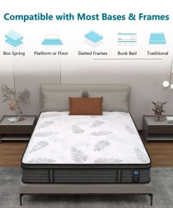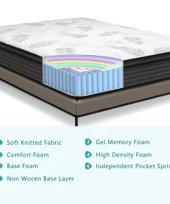 Experience restful sleep with our 12-inch hybrid mattress. Featuring gel-infused technology for enhanced core support, this mattress is designed to keep you comfortable all night. The independent pocket springs minimize motion transfer, while the reinforced edge with two rows of densely packed coils ensures durability and stability. Wrapped in soft, double-sided knitted fabric, this mattress provides a luxurious feel. With 744 coils and pressure-relieving comfort, it’s conveniently delivered to your door, ready to use with no installation required.Enhanced Core Support: Exclusive gel-infused technology targets the entire comfort layer, providing extra core support for better sleep throughout the night.Minimized Motion Transfer: Independent pocket springs reduce vibration and sound, ensuring minimal disturbance when sleeping partners move.Edge Stability: Two rows of densely packed coils reinforce the mattress edges, preventing slipping and providing a solid seating surface.Pressure-Relieving Comfort: This mattress delivers targeted support for your back and core, ensuring pressure-relieving comfort.Luxurious Fabric: Made with double-sided knitted fabric, the gel memory foam mattress feels soft, comfortable, and elastic.Convenient Setup: Delivered to your door, easy to open, and requires no installation.Optimal Coil Count: The queen size mattress features 744 coils for balanced support and durability.