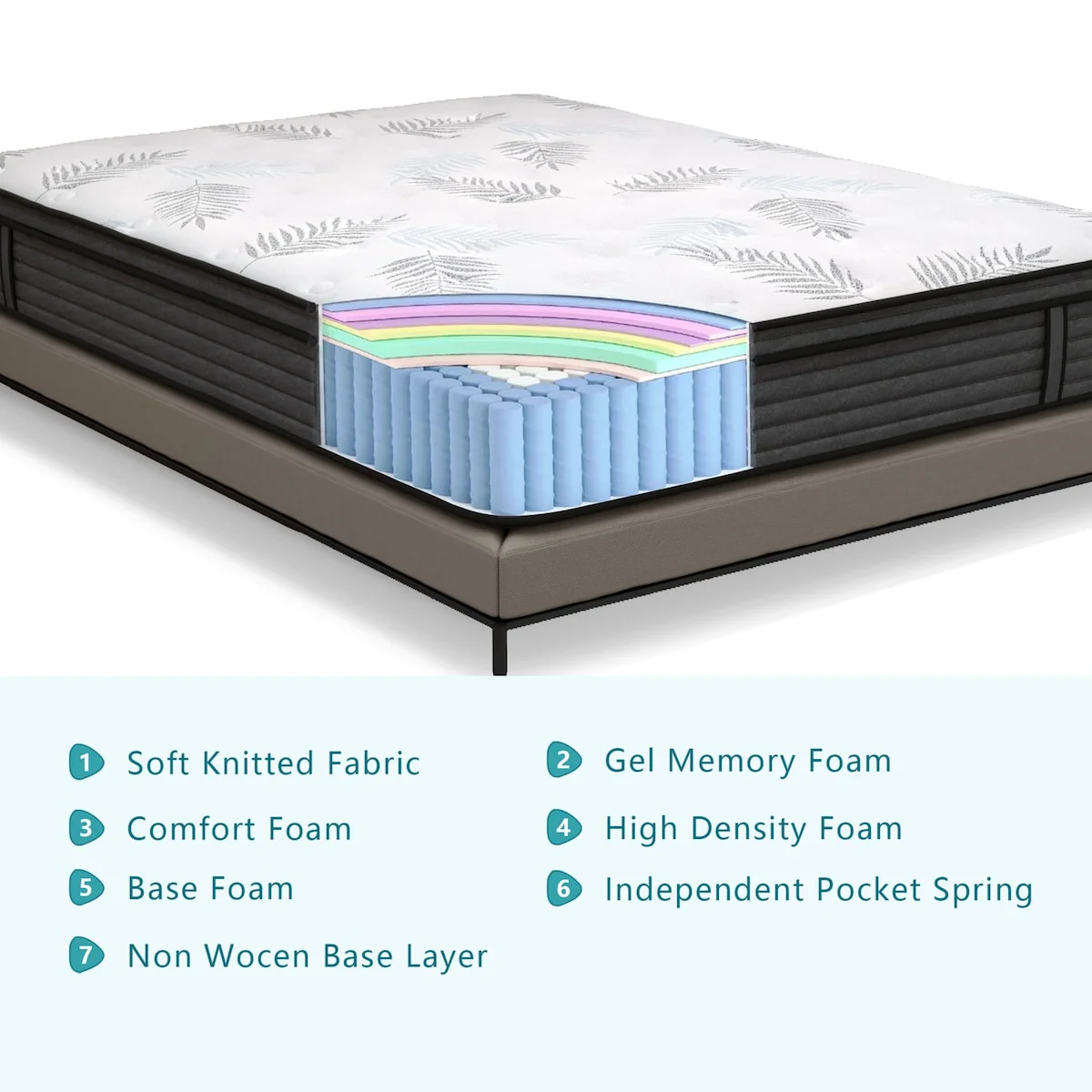 Experience restful sleep with our 12-inch euro top hybrid mattress. Featuring gel-infused technology for enhanced core support, this hybrid mattress is designed to keep you comfortable all night. The independent pocket springs minimize motion transfer, while the reinforced edge with two rows of densely packed coils ensures durability and stability. Wrapped in soft, double-sided knitted fabric, this memory foam mattress in a box provides a luxurious feel. With 744 coils and pressure-relieving comfort, it’s conveniently delivered to your door, ready to use with no installation required.