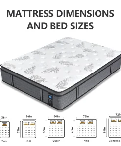 Experience restful sleep with our 12-inch hybrid mattress. Featuring gel-infused technology for enhanced core support, this mattress is designed to keep you comfortable all night. The independent pocket springs minimize motion transfer, while the reinforced edge with two rows of densely packed coils ensures durability and stability. Wrapped in soft, double-sided knitted fabric, this mattress provides a luxurious feel. With 744 coils and pressure-relieving comfort, it’s conveniently delivered to your door, ready to use with no installation required.Enhanced Core Support: Exclusive gel-infused technology targets the entire comfort layer, providing extra core support for better sleep throughout the night.Minimized Motion Transfer: Independent pocket springs reduce vibration and sound, ensuring minimal disturbance when sleeping partners move.Edge Stability: Two rows of densely packed coils reinforce the mattress edges, preventing slipping and providing a solid seating surface.Pressure-Relieving Comfort: This mattress delivers targeted support for your back and core, ensuring pressure-relieving comfort.Luxurious Fabric: Made with double-sided knitted fabric, the gel memory foam mattress feels soft, comfortable, and elastic.Convenient Setup: Delivered to your door, easy to open, and requires no installation.Optimal Coil Count: The queen size mattress features 744 coils for balanced support and durability.