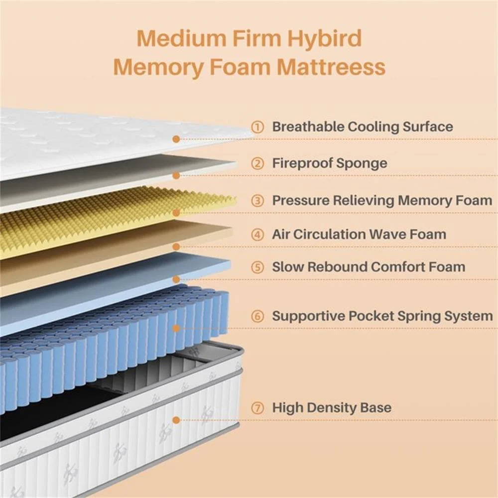 - Breathable and Healthy: Crafted from high-density, first-class thermal material, this mattress is both breathable and natural. It effectively dissipates steam and sweat from the contact surface, keeping you comfortable and dry throughout the night. The independent pocket spring system enhances air circulation, preventing trapped heat for a cooler and more comfortable sleep.