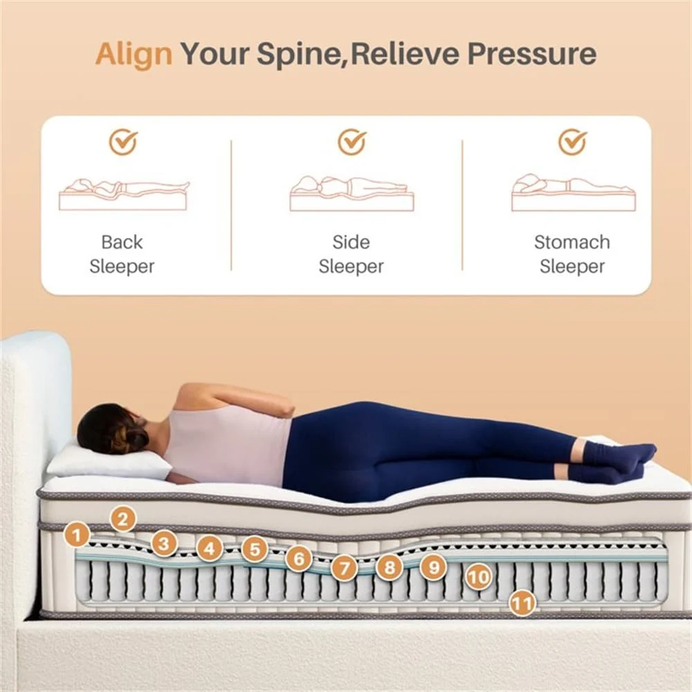 - Sweet Sleep and Comfortable Support: The 12-inch full size mattress combines memory foam with multi-layer foam and an independent spring support system. This design ensures that your weight is evenly distributed from head to toe, providing targeted support that helps relax your muscles and enhances your sleep experience.