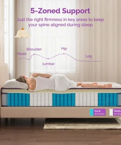 Experience a comfortable and relaxing sleep with the Sersper 12-Inch Medium Euro Top Memory Foam and Pocket Spring Hybrid Mattress. It features a soft, breathable cover that promotes a fresh sleeping condition all night long. This mattress contours to your body to relieve pressure points and provides ergonomic support, making it perfect for side and back sleepers. With efficient heat transfer and airflow, this mattress ensures a cool and comfortable sleeping experience. It’s CertiPUR-US certified and comes with a 10-year limited warranty.