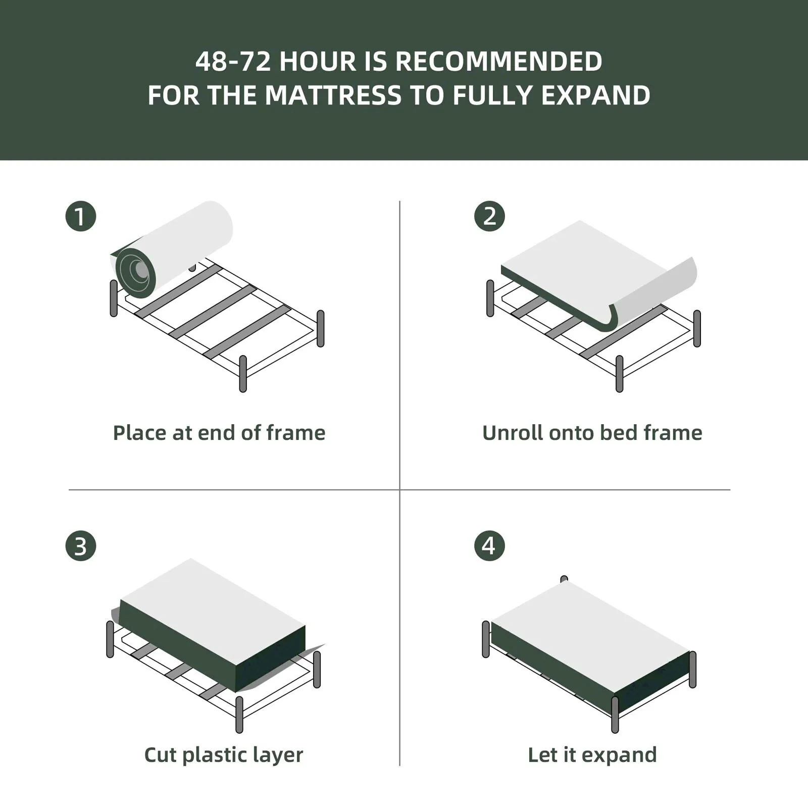 - Note: Please keep a safe distance when open the package as the mattress may expand quickly.