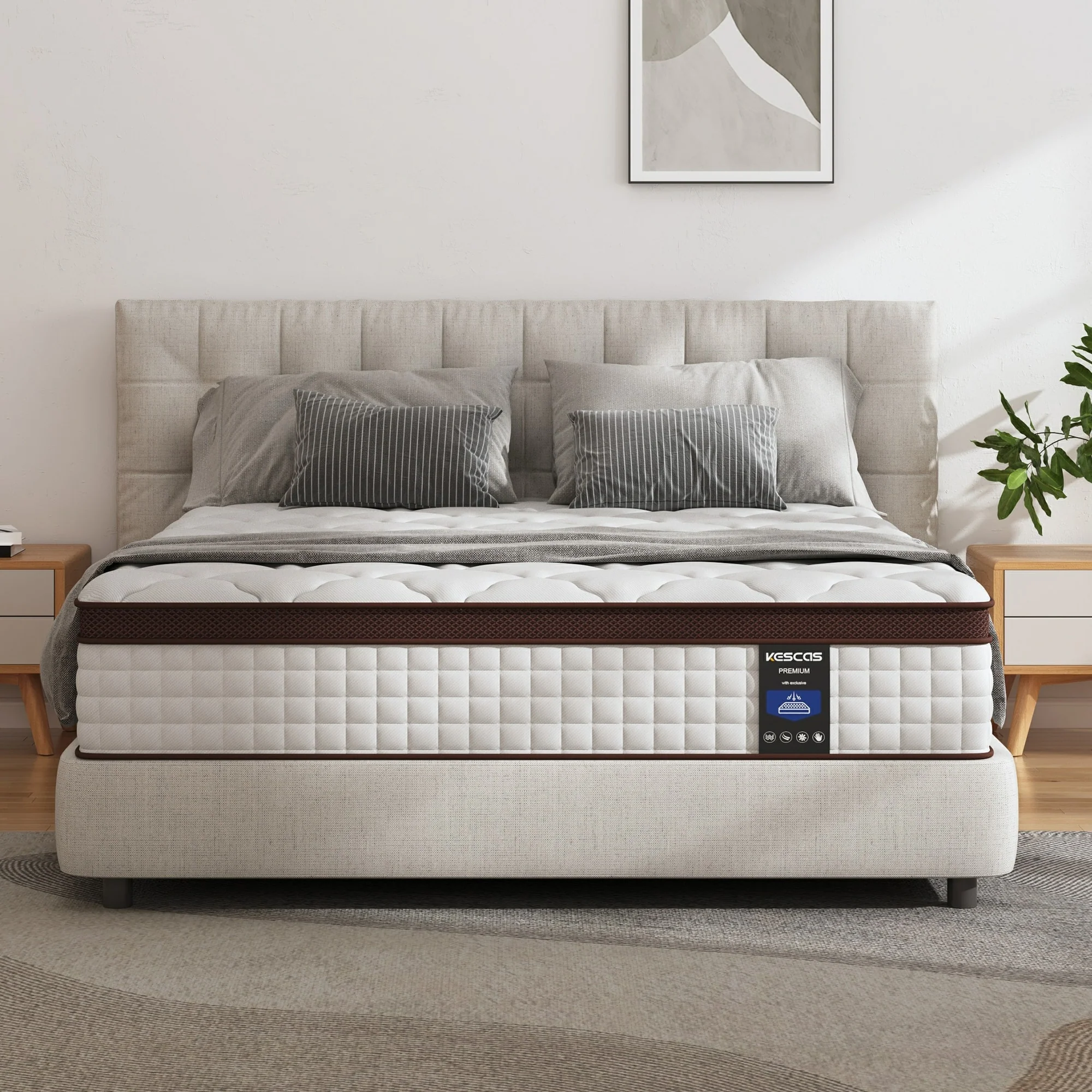 12-inch full-size pillow top memory foam hybrid mattress with the most cost-effective, which meets most people’s sleeping needs. Dreamy comfort at an unbeatable price. Kescas is reimagining sleep from the ground up. All of sleep products are developed in-house by our award-winning research and development team. The Memory Foam is the perfect introduction to Kescas quality at a comfortable price. The Memory Foam has two layers of premium foam creating a balance of softness and support. It has a touch of softness and bounce, while underlying memory foam supports pressure points and cradles curves. The durable base foam prevents sinking and sagging and supports the whole body. The eco-friendly cover is made with recycled materials and easily zips off. The knit mattress covers have four-way stretch, so you feel the full benefits of the below layers.