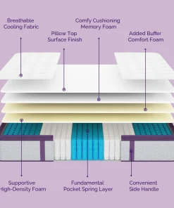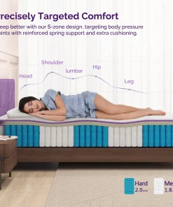 - Ultra quiet – due to the pocket spring multilayer foam design, this mattress can effectively absorb noise and vibration; no wake-up-up caused by tossing and turning, and no disturbing companion.