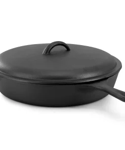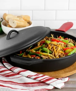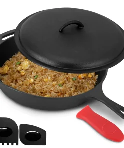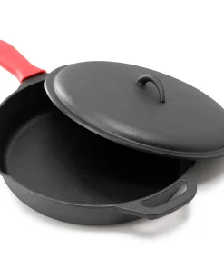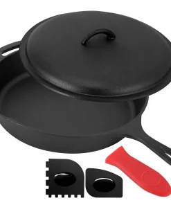 12 Inch Pre-Seasoned Cast Iron Skillet Includes Cast Iron Lid and Silicone Handle Cover
