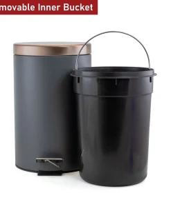 Elama’s 3 Gallon Grey and Copper Automatic Opening Office and Kitchen Trash Bin is compact trash can and the ideal choice for any home’s bathroom or office with its iconic round shape that fits in corners, against the wall – just about anywhere.The trash can features a strong steel pedal engineered for a smooth and easy step that gives it stable operation for a "big can feel" and a removable inner plastic bucket for easy trash disposal.The Elama 12 liter compact classic round step trash can the perfect wastebasket for smaller spaces like a bathroom or an office or wherever space is limited.Once you release the lid pedal, the lid closes smoothly. The lids has a shock mechanism that prevents the lid to shut hard. The trashcan also comes with a latch on the back for easy transport, which makes it easy to move from place to place. Item Dimensions: 16.00" x 12.75" x 10.75"Item Weight: 2.31lbs