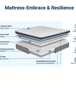 Material: Knitted Fabric / Fireproof Memory Foam / Non-temperature Sensor Foam / Pressure Relief Foam / Air Wave Shape Support Foam / Individual Pocket Springs  / Non-slip Bottom