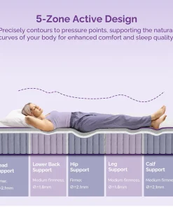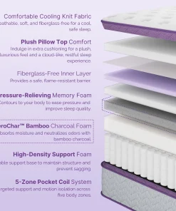 - 5-Zone Pocket Coil Support – Targeted support and excellent motion isolation across five body zones.