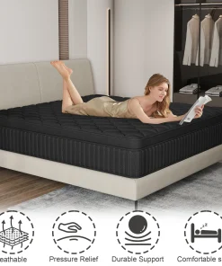 - Temperature-Regulating & Ultra-Breathable – Features an open-coil airflow system that promotes constant air circulation, combined with advanced cooling technologies like graphite-infused memory foam or phase-change material covers. The breathable, moisture-wicking cover and ventilated foam layers work together to actively pull heat away from your body, keeping you comfortably cool throughout the night – perfect for hot sleepers or warm climates.