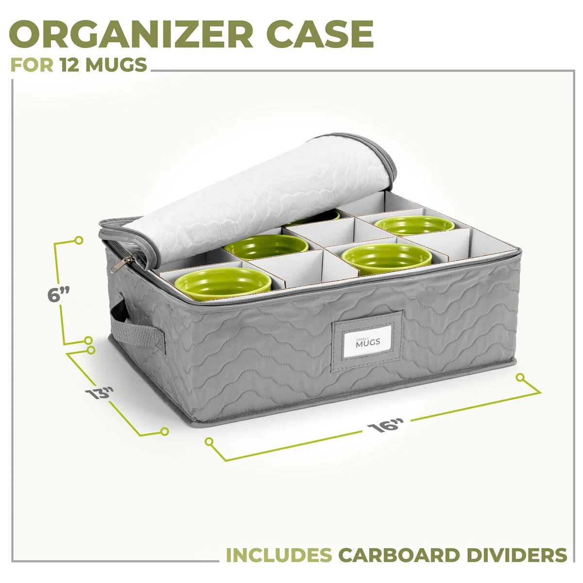 The Sorbus Coffee Mug and Glass Organizer Storage is an ideal solution for coffee enthusiasts seeking a stylish and protective arrangement for up to 12 favorite mugs or glassware. This efficient organizer, complete with dividers, label windows, and handles, ensures scratch-free storage in home cabinets or attic spaces. The space-saving design optimizes cabinet space, serving as a versatile solution for mug display, wine glasses, and more. This durable organizer guarantees secure transit with its mug protector feature.