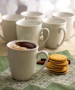 Fresh and timeless, this 6 Piece Porcelain Mug set is sure to make your next sip special. Whether you’re looking for a coffee mug or a tea cup, this beautiful white 12 Ounce Porcelain mug set is perfect for every day use. Gather up your family and friends, this 6 piece set is also ideal for gatherings and special occasions. Constructed of strong and durable Porcelain, these cups will last throughout the years. Lightweight with a clean design, microwave and dishwasher safe.