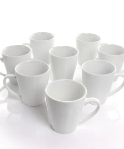 12 Ounce Sturdy Porcelain Mug 8 Piece Set in White