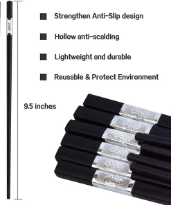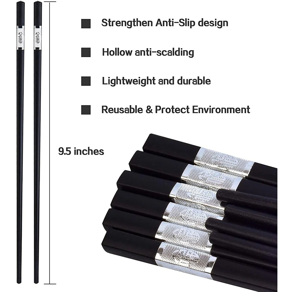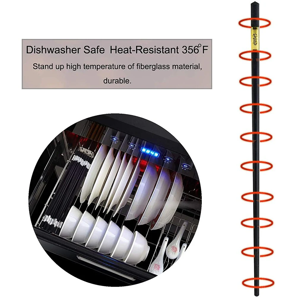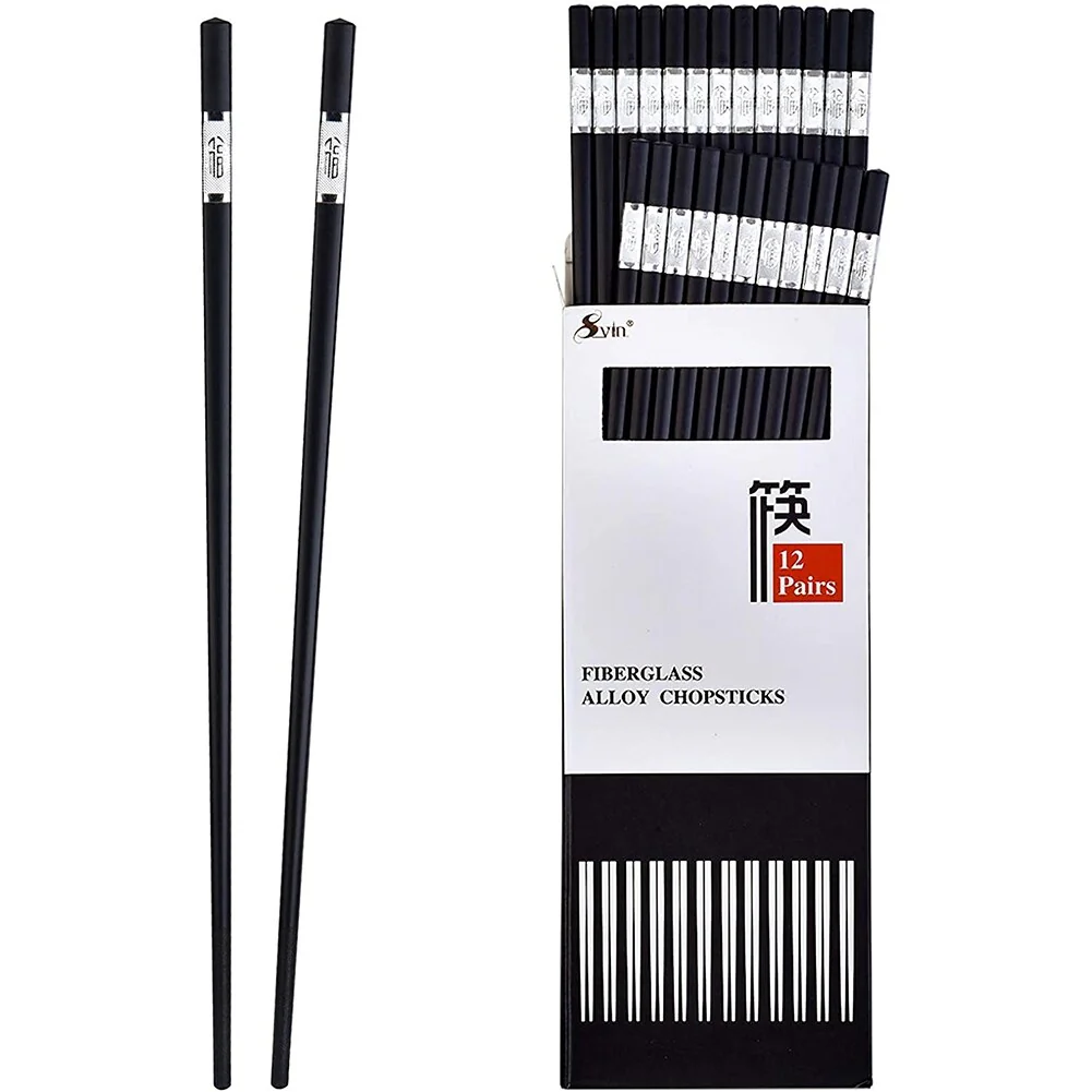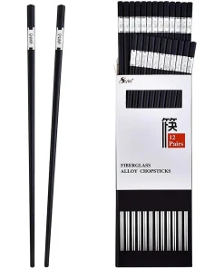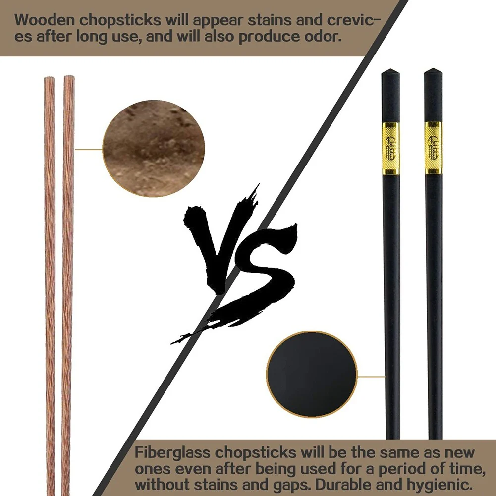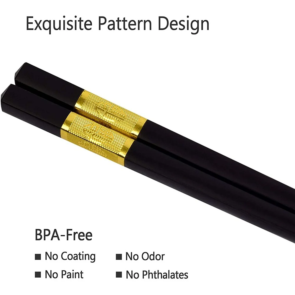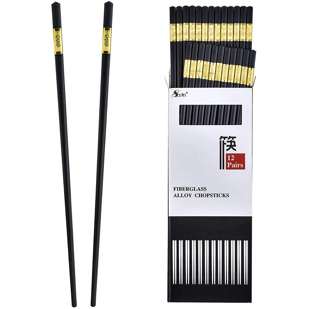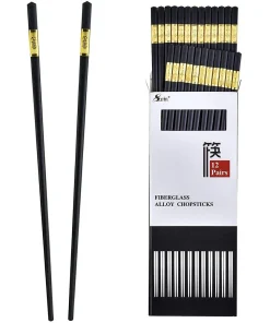 12 Pairs Durable Fiberglass Chopsticks – Non-Slip with Case – Gold