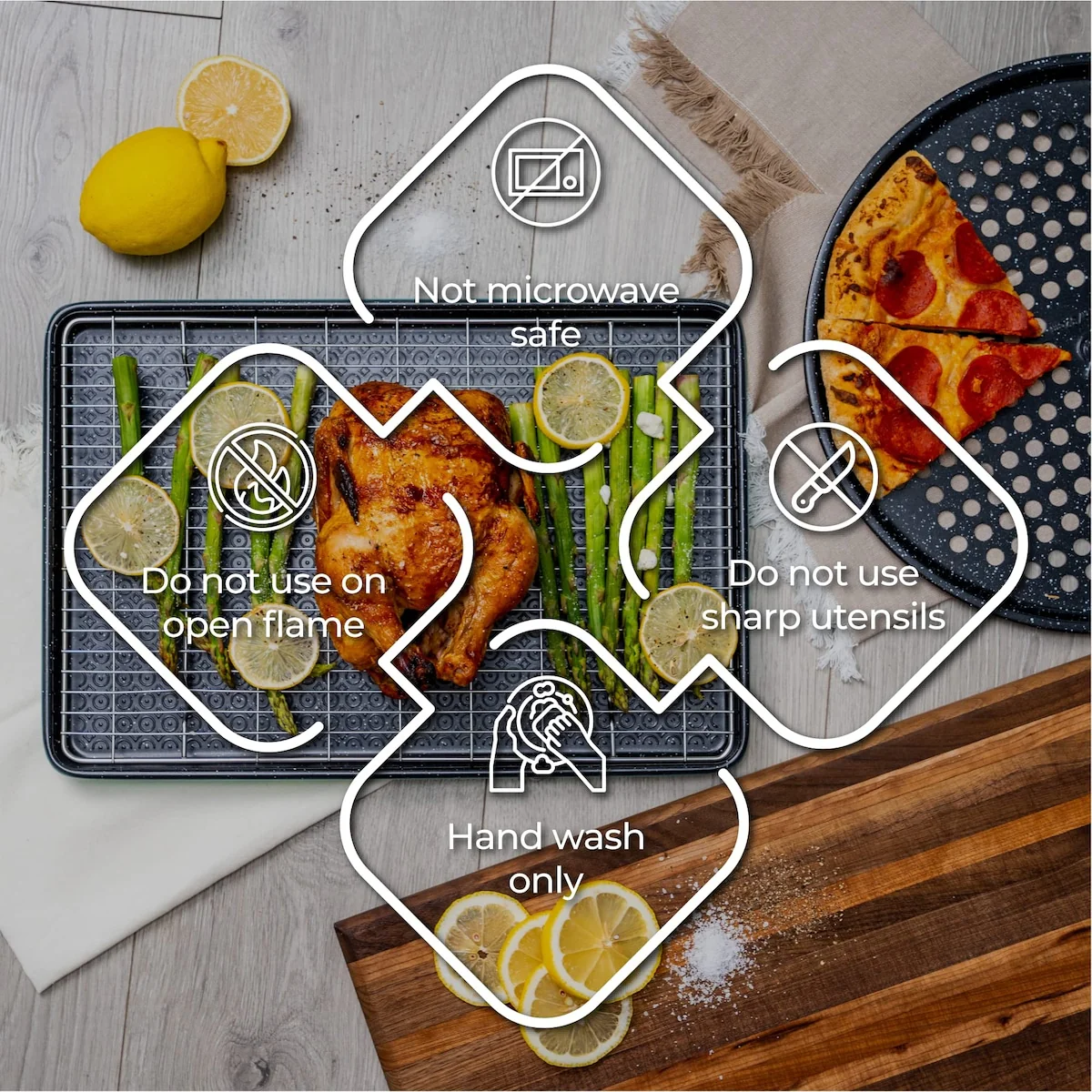 COMES WITH DOWNLOADABLE RECIPE EBOOK: What would a complete baking tray set be without a useful guide for recipes? Just register for the warranty after purchasing to receive the recipe eBook.