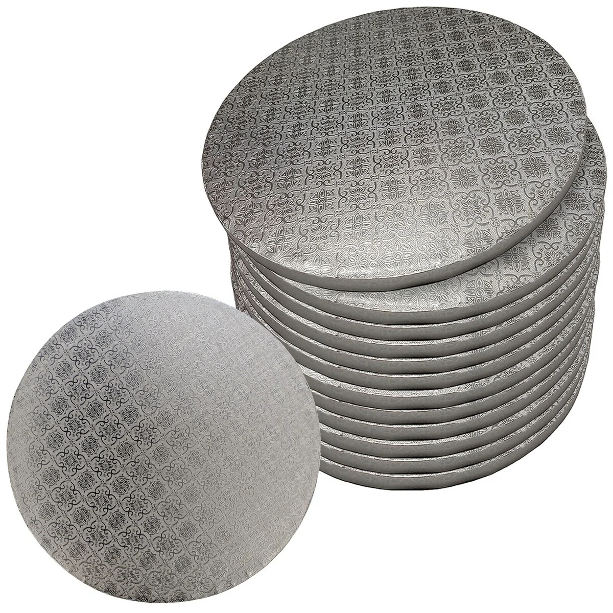 - [Craft Exquisite Presentations]: Utilize the Spec101 Cake Board Foil to enhance the visual appeal of pastries, cakes, and pies; The set includes (12) silver bulk cake drums, each measuring 12 inches in diameter with smooth edges.