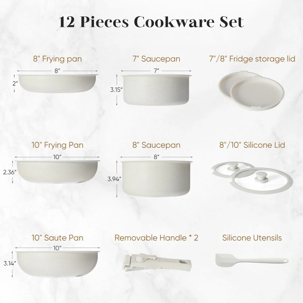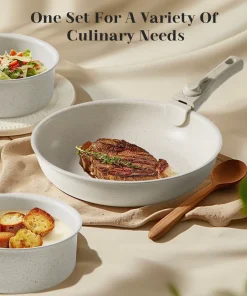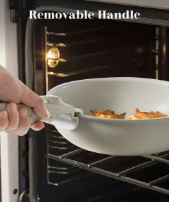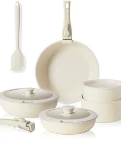 Made with non-stick granite, the cookware set promises easy and effortless cleaning. The unique granite material prevents food from sticking to the surface, reducing the need for oil and making your meals healthier and clean-up faster.This cookware set features detachable handles, perfectly designed to handle hot pots and pans safely. The unique design allows for easy and secure handling while cooking, ensuring you a hassle-free cooking experience.