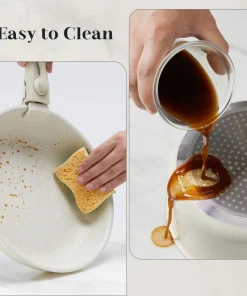 The granite non-stick coating is safe for use. It is free from potentially harmful chemicals, ensuring your meals won’t be contaminated by any unwanted substances. Experience worry-free cooking with our safe and high-quality cookware set.