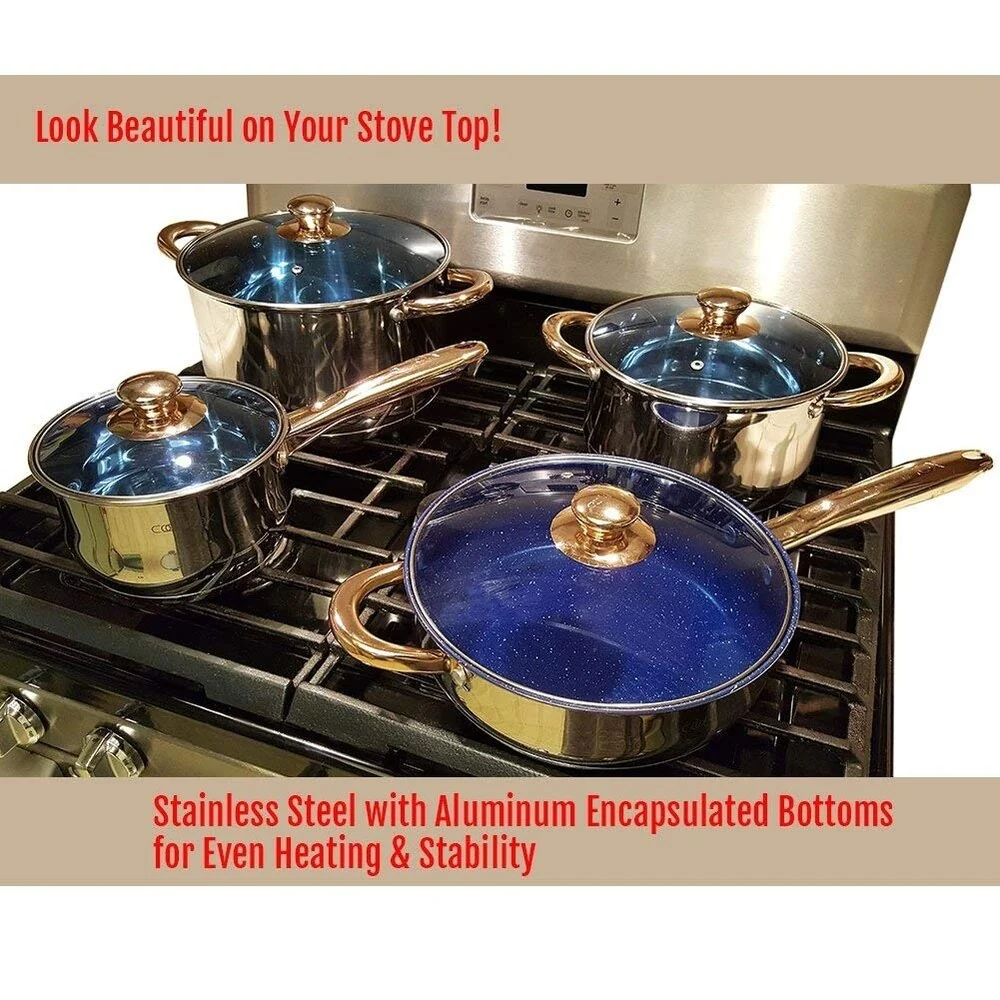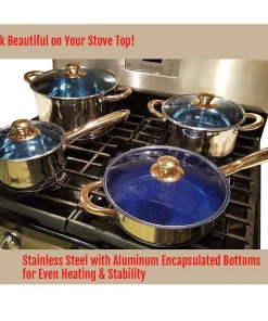 - ★ COOK EVENLY – Prepare delicious dishes for your family with this stunning set of pots and pans. Features encapsulated aluminum bottoms for stove top stability even cooking.
