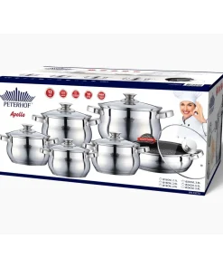 Cookware set made by Peterhof will be a perfect addition for each and every household. Set is made of non-corrosive stainless steel and consists of 5 saucepans of different sizes together with 1 deep fry pan for every occasion. Perfect for all types of cooking, set has a wide variety of uses. Suitable for all cooking sources: including induction stoves Non-heating ergonomic stainless steel handles 5-step capsule bottom assures even heat conduction Clear glass lid Easy to clean