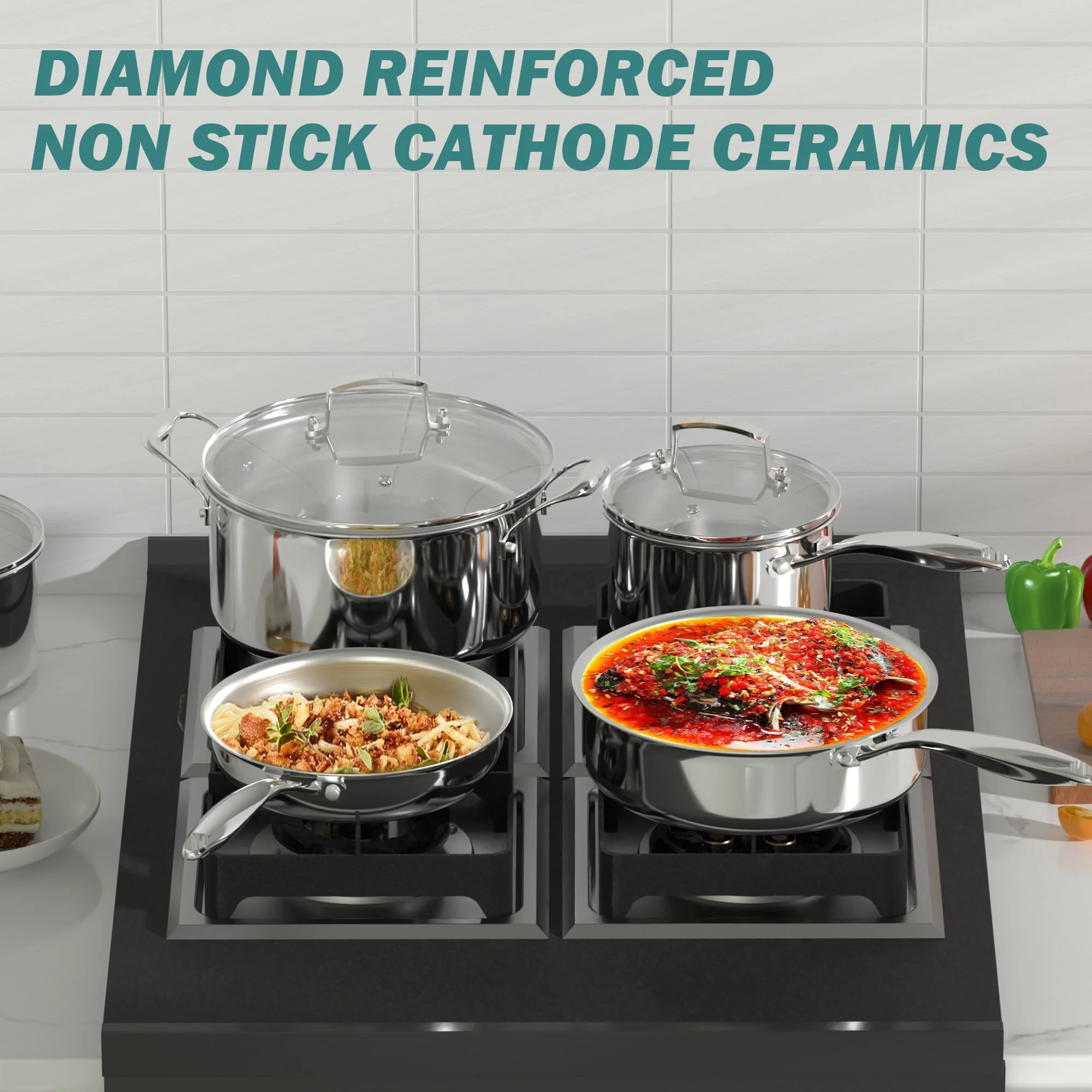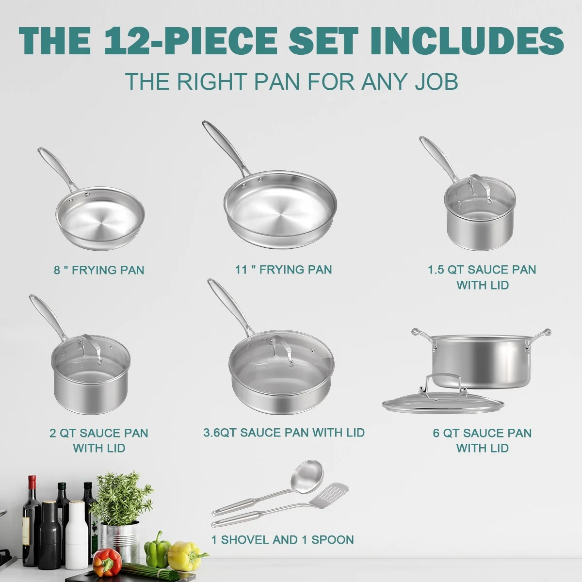 Elevate your culinary skills with our 12-Piece Tri-Ply Stainless Steel Cookware Set. This elegantly designed set offers superior heat distribution and a stylish look for your kitchen. Ideal for every cooking enthusiast aiming to enhance their kitchen experience.