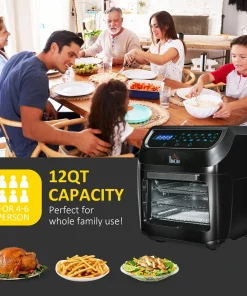 - Healthy Cooking: This air fryer oven requires 80% less oil than traditional frying methods so that you can enjoy yummy, crispy foods with less fat. The 360° hot air circulation makes sure your food cooks evenly.