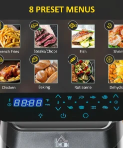 - Multifunctional & 8 Preset Menus: This small air fryer combines baking, broiling, roasting, and dehydrating in one unit. There are eight preset menus: french fries, steaks/chops, fish, shrimp, chicken, baking, rotisserie, and dehydrating, perfect for beginners.