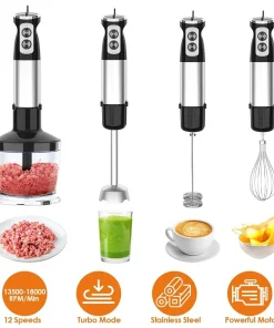 - 12 Customizable Speeds & Turbo Mode: The all-in-one handheld blender’s speed dial features 12 adjustable speeds and provides precise control, allowing you to achieve the desired consistency for your recipes. Moreover, the Turbo Mode allows for an extra boost of power and helps you efficiently move through high-resistance, dense recipes with ease.