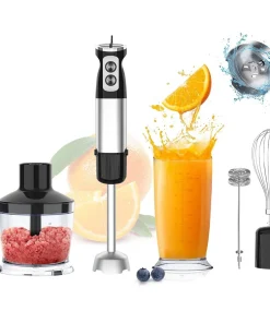 - Â In 1 Hand Blender: Our portable hand blender set includes a hand blender, blender stick, beaker, chopper bowl, whisk, and milk frother, which make it a perfect assistant in the kitchen for foodie, mother, chef and improve your diverse needs for daily diet.