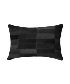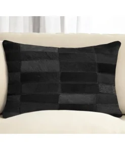 The 12-inch x 20-inch black patchwork cowhide lumbar throw pillow is the perfect decorative accessory for your home. Indulge in a bit of luxury with this black colored decorative pillow covered with high grade, genuine cowhide. Elegantly chic, this pillow is the epitome of luxury. This soft polyfill filled pillow not only is decorative but made to be comfy and cozy all day long. Great to use on its own or mix with other decorations for the perfect look. A great decorative accessory to add color and dimension to your favorite chair, accent your sofa, or to use as part of your bed ensemble. 12-inch h x 20-inch w x 5-inch d.