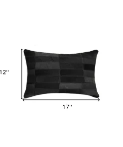 12" X 20" Black Patchwork Cowhide Lumbar Throw Pillow