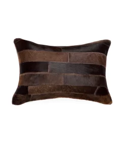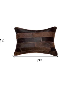 12" X 20" Chocolate Patchwork Cowhide Lumbar Throw Pillow