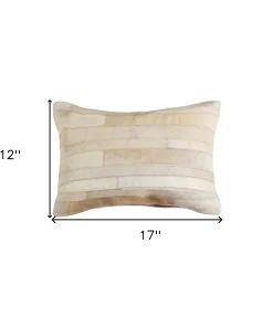 12" X 20" Natural Patchwork Cowhide Lumbar Throw Pillow
