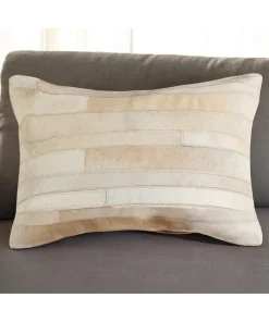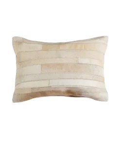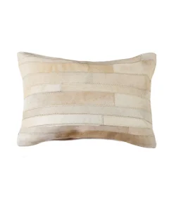 Unique and decorative, this comfortable 12-inch x 20-inch natural patchwork cowhide lumbar throw pillow will leave a lasting impression. The luxurious natural coloring of the genuine cowhide will add dimension and texture to your space. Elegantly chic, this pillow is the epitome of luxury. Super soft and built to hold its shape, this polyfill-filled pillow is a great option. Great to use on its own or mix with other decorations for the perfect look. A great decorative accessory to add color and dimension to your favorite chair, accent your sofa, or to use as part of your bed ensemble. 12-inch h x 20-inch w x 5-inch d.