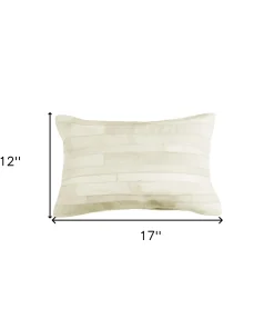 12" X 20" Off White Patchwork Cowhide Lumbar Throw Pillow