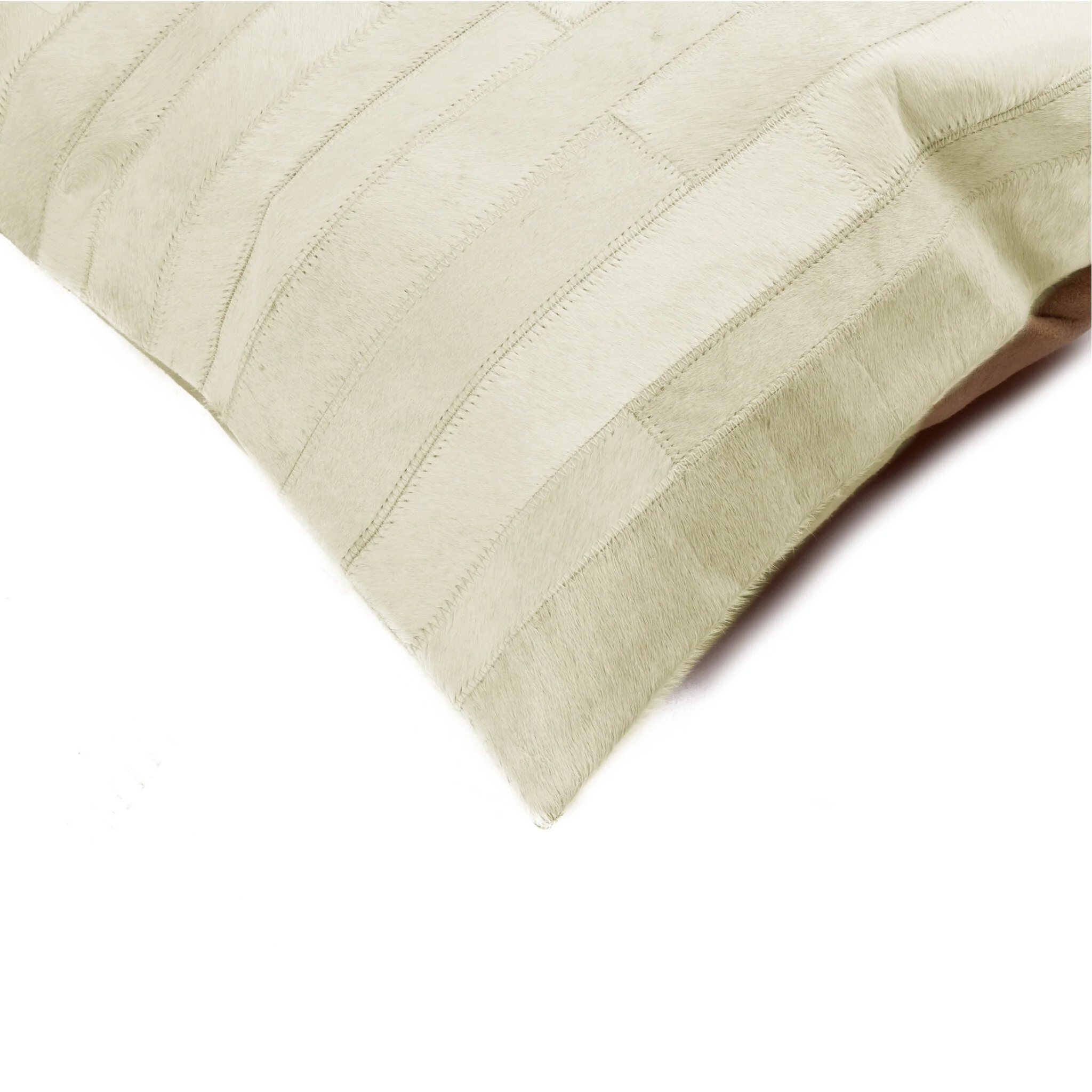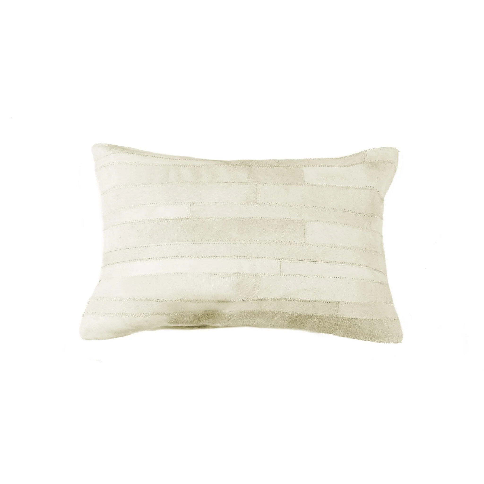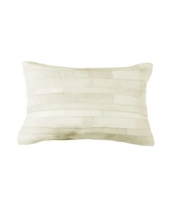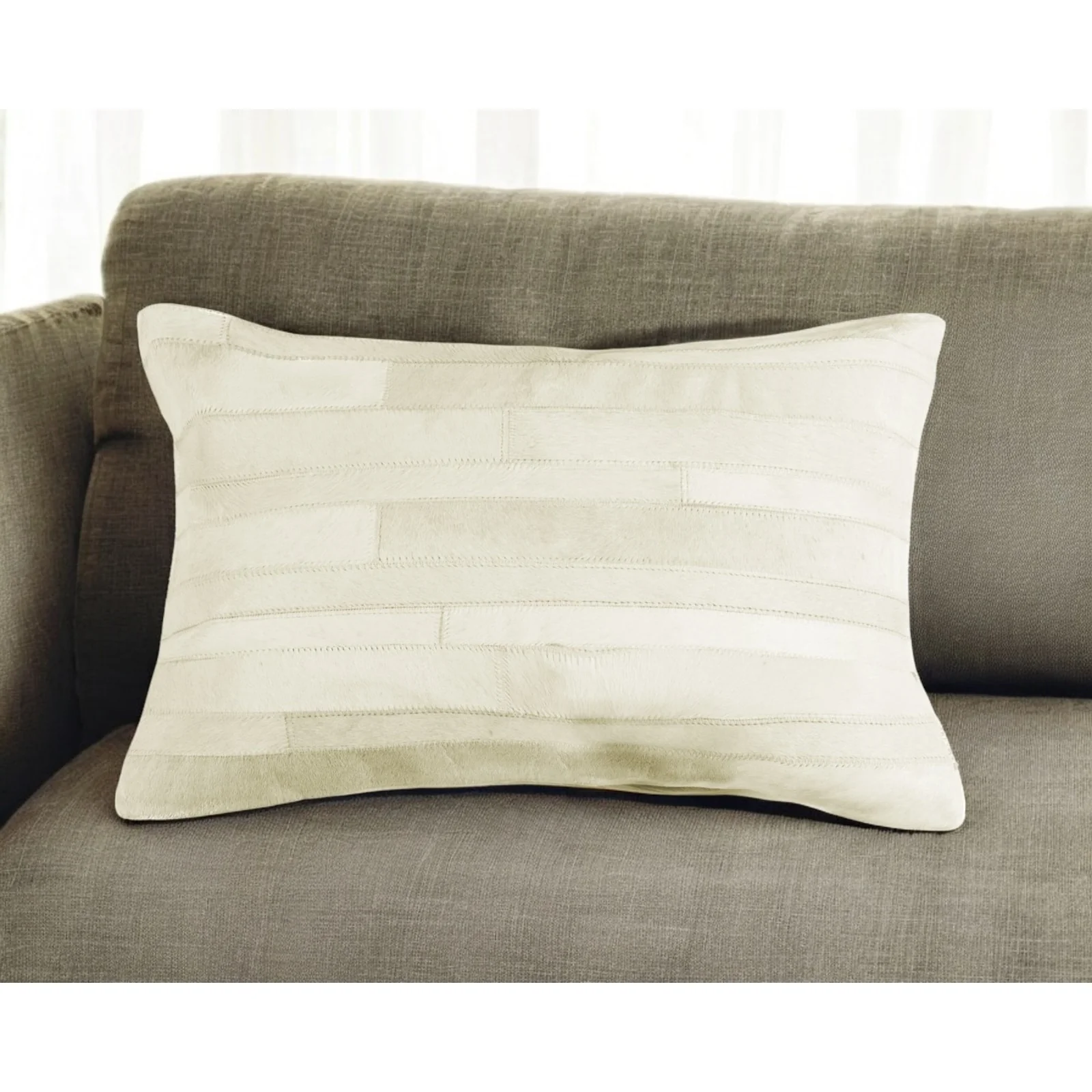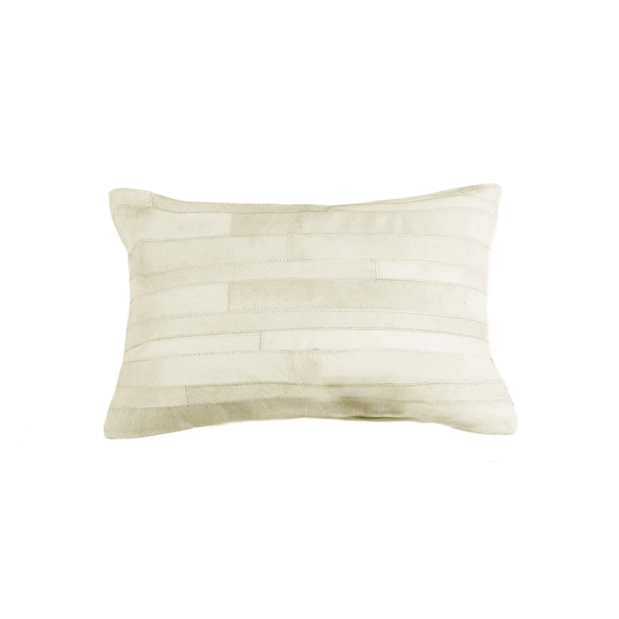 The perfect complement to your sofa, favorite chair, or bed, this 12-inch x 20-inch off white patchwork cowhide lumbar throw pillow is a great decorative accent. This off white hued piece represents the highest quality construction, expertly made from premium and genuine cowhide. Elegantly chic, this pillow is the epitome of luxury. Super soft and built to hold its shape, this polyfill-filled pillow is a great option. Decorative pillows are a great way to change up the look and feel of your space easily and quickly. Decorative throw pillows not only add color and dimension to your space but can be comfy and supportive when you are lounging and cuddling as well. 12-inch h x 20-inch w x 5-inch d.