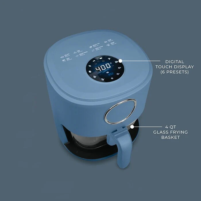 Explore effortless meal preparation with our air fryer’s digital touch display featuring 6 presets. Â Â Simplify cooking tasks and enjoy the convenience of preset options for a variety of delicious dishes.