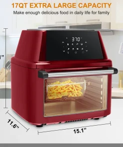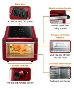 1. Extra Large Cooking Capacity , 16.91 quarts of cooking space makes this air fryer one of the largest on the market, while still being compact enough to fit easily on your counter top.With Rotisserie Chicken Fork, it could cook 3kgs( 6pounds ) Chicken with crisp outside and juice inside