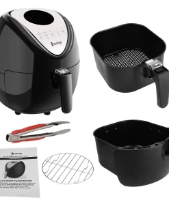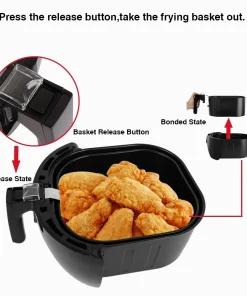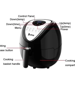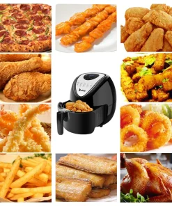The latest generation of electric Air Fryer allows you to enjoy your favorite fried snacks or foods without the added calories from dunking food in oil.Sleek and modern look with advanced touch screen menu. Take the guesswork out of cooking with the built-in touch screen menu featuring 7 cooking presets: French fries, Natural potato, Chicken nuggets, Chicken thighs, Shrimp, Fish, Cake . Equipped with a wide temperature range from 140°F to 392°F in 9 degree increments and a cooking timer up to 30 minutes.Features:1. Large capacity can satisfy more food cooking ideas2. Digital easy one touch panel with 7 cooking presets – one touch settings make cooking a breeze3. Uses no or less oil- Cook healthy without butters or oils4. The air fryer will automatically switch into standby mode when the cooking time is done5. Brand new and high quality. Equipped with a carry handle for easy transportation and storage6. It also features a ready light to let the user know when the air fryer has reached the desired temperature7. Made up of durable and reliable material, can be used for a long timeSpecifications:1. Color: Black2. Watt: 1800W3. Voltage: 120V/60Hz4. Timer: 0-30Mins5. Temperature Range: 140 to 392 Degrees6. Power button: Yes7. Cooking presets: 7 cooking presets8. Mesh Basket Capacity: 5.6Quarts / 5.3L9. Fryer Pan Capacity: 6.87Quarts / 6.5L10. Detachable Basket: Yes11. Certification: ETL Listed12. Material: Cold Rolled Steel & PP Plastic13. Dimensions: (12.05 x 15.12 x 13.23)"/(30.6 x 38.4 x 33.6)cm (L x W x H)14. Weight: 264.55oz / 7500g15. Brand: ZOKOPPackage Includes:1 x Air Fryer1 x Shelf1 x Food Clip1 x Manual