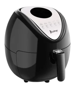 The latest generation of electric Air Fryer allows you to enjoy your favorite fried snacks or foods without the added calories from dunking food in oil.Sleek and modern look with advanced touch screen menu. Take the guesswork out of cooking with the built-in touch screen menu featuring 7 cooking presets: French fries, Natural potato, Chicken nuggets, Chicken thighs, Shrimp, Fish, Cake . Equipped with a wide temperature range from 140°F to 392°F in 9 degree increments and a cooking timer up to 30 minutes.Features:1. Large capacity can satisfy more food cooking ideas2. Digital easy one touch panel with 7 cooking presets – one touch settings make cooking a breeze3. Uses no or less oil- Cook healthy without butters or oils4. The air fryer will automatically switch into standby mode when the cooking time is done5. Brand new and high quality. Equipped with a carry handle for easy transportation and storage6. It also features a ready light to let the user know when the air fryer has reached the desired temperature7. Made up of durable and reliable material, can be used for a long timeSpecifications:1. Color: Black2. Watt: 1800W3. Voltage: 120V/60Hz4. Timer: 0-30Mins5. Temperature Range: 140 to 392 Degrees6. Power button: Yes7. Cooking presets: 7 cooking presets8. Mesh Basket Capacity: 5.6Quarts / 5.3L9. Fryer Pan Capacity: 6.87Quarts / 6.5L10. Detachable Basket: Yes11. Certification: ETL Listed12. Material: Cold Rolled Steel & PP Plastic13. Dimensions: (12.05 x 15.12 x 13.23)"/(30.6 x 38.4 x 33.6)cm (L x W x H)14. Weight: 264.55oz / 7500g15. Brand: ZOKOPPackage Includes:1 x Air Fryer1 x Shelf1 x Food Clip1 x Manual