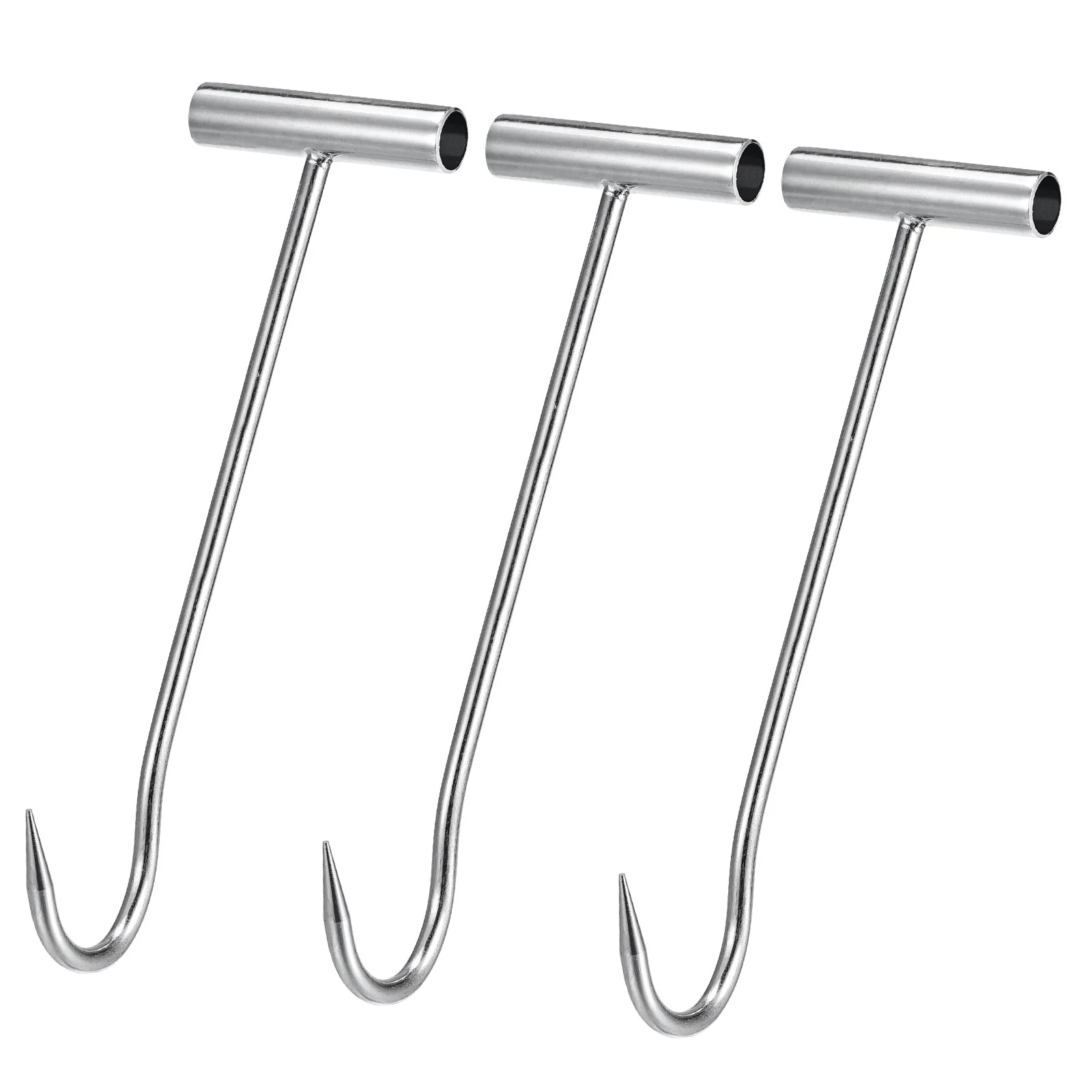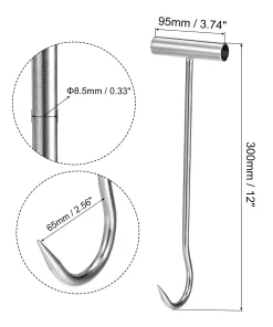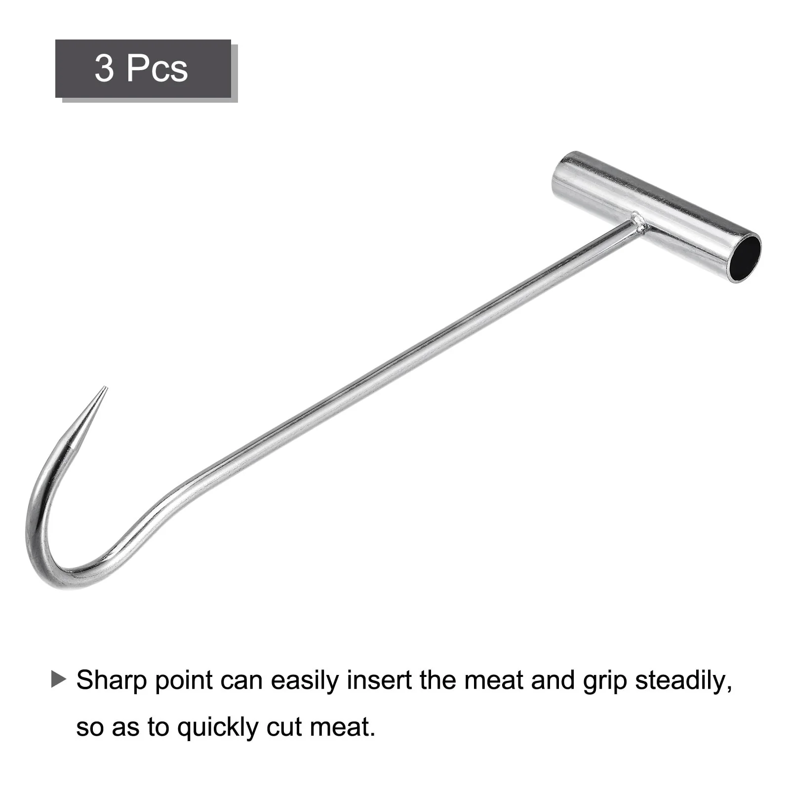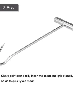 1. Design – With a T-shape handle, this meat processing hook is comfortable to hold, non-slip and wear-resistant, labor-saving. The sharp point can easily insert the meat and grip steadily for your quickly cutting.