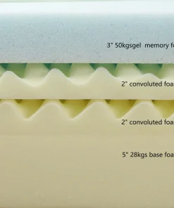 3in. 50kgs gel memory foam, 2in. 2in. Convoluted foam, 5in. 28kg base foam