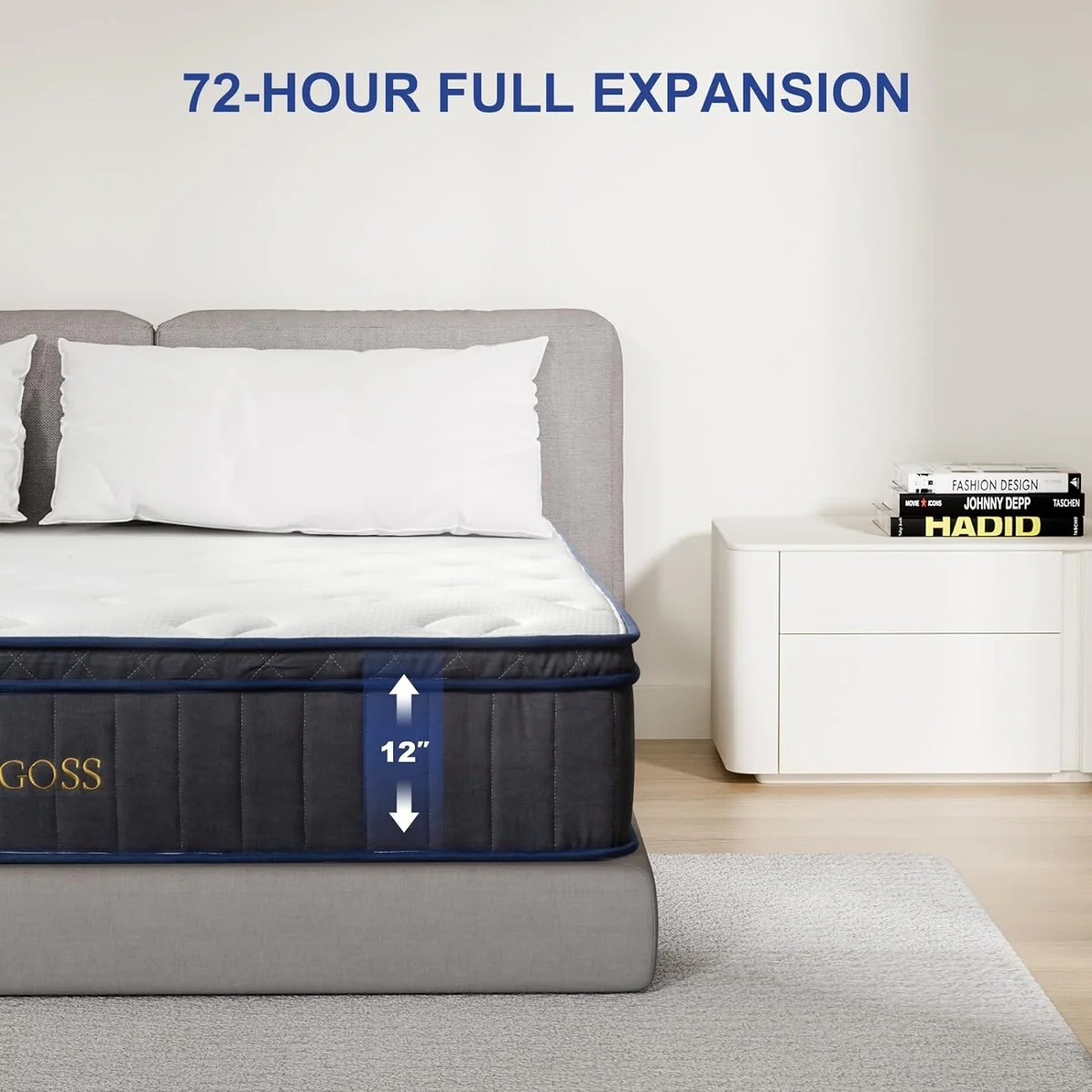 【Mattress in a Box】Vacuum-sealed compressed queen mattress into a package box, convenient to ship to your door. Just move the box to the room you want to use it in, unbox and unroll your mattress 12 inch, and wait for it expand to its original shape about 72 hours. Note: It is recommended that at least 2 people work together to move the hybrid innerspring mattress.